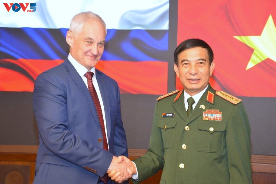 Le ministre vietnamien de la Défense, Phan Van Giang (droite) et son homologue russe, Andrey Removich Belousov. Photo: VOV Russie |