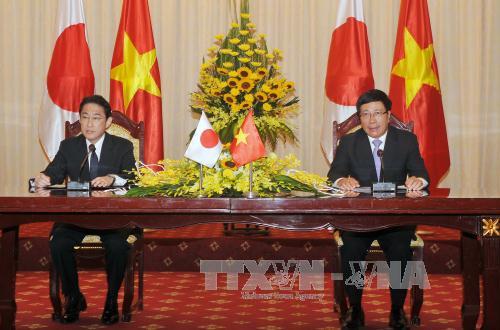Après son 12ème congrès national, le Parti communiste vietnamien continue de considérer le Japon comme un partenaire majeur durable, a indiqué Pham Binh Minh lors de la conférence de presse donnée à l’issue de la réunion. Il a saisi l’occasion pour remercier le gouvernement japonais d’avoir accordé au Vietnam 2,5 milliards de dollars d’aides publiques l’an dernier, espérant que ces aides augmenteront. Le ministre japonais des Affaires étrangères s’est engagé à continuer d’attribuer des aides publiques au Vietnam pour construire des infrastructures, améliorer la compétitivité, former des ressources humaines et lutter contre le changement climatique.