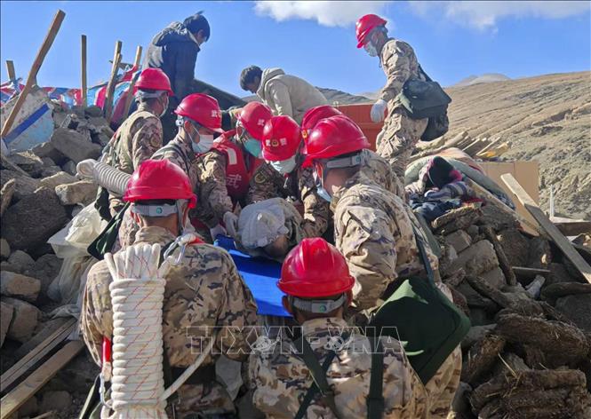 Forces de secours en service sur les lieux du séis,e dans la région autonome du Tibet, en Chine, le 7 janvier 2025. Photo: THX/TTXVN |