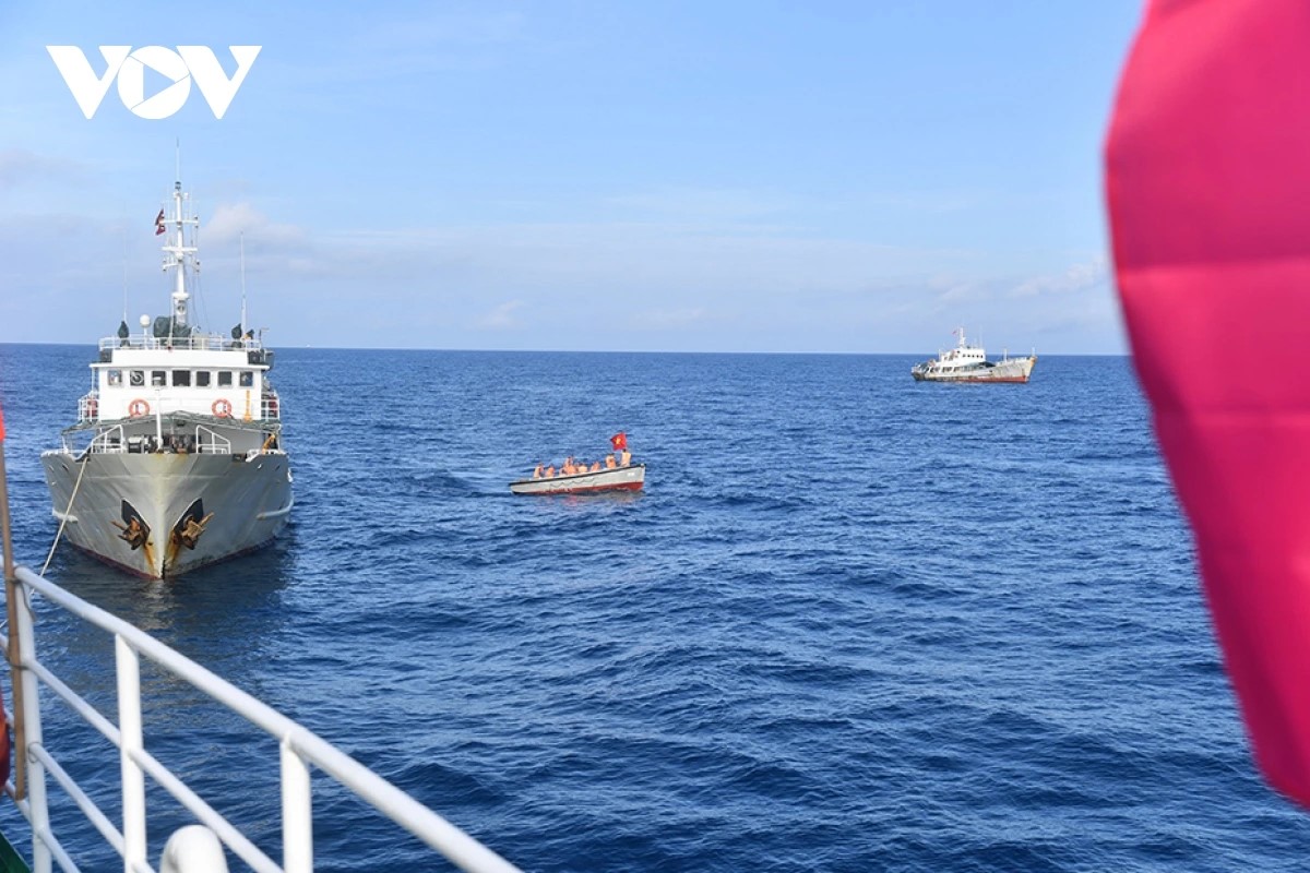 Le navire Truong Sa 04 sert de bureau de vote anticipé pour les électeurs en mission en mer. Photo: Van Duong/VOV |