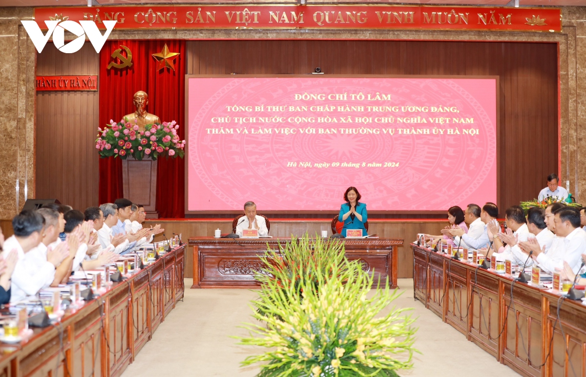 Le secrétaire général du Parti et président de la République Tô Lâm travaille avec la permanence du Comité du Parti de la ville de Hanoï |
