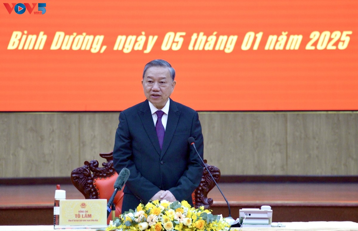 Le secrétaire général Tô Lâm au commandement militaire de la province de Binh Duong. Photo: VOV |