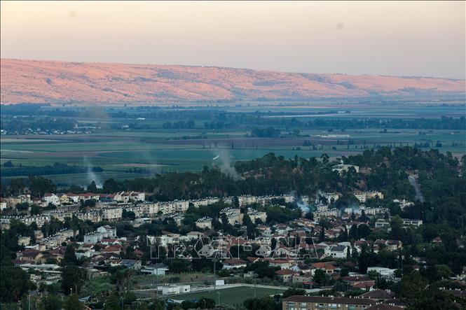 De la fumée s'élévant de Kiryat Shmona, dans le nord d'Israël, après une attaque à la roquette en provenance du Liban. Photo: Xinhuanet/AVI |