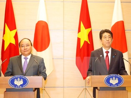(VOVworld) - Le Premier ministre Nguyen Xuan Phuc a eu un entretien samedi à Tokyo avec son homologue japonais Shinzo Abe. Au menu des discussions : les mesures pour développer le partenariat stratégique approfondi entre leurs pays. Les deux Premiers ministres ont convenu de renforcer la confiance politique en poursuivant les visites et rencontres de haut rang et en améliorant l’efficacité des dialogues bilatéraux. Ils ont également décidé d’intensifier la coopération bilatérale dans la sécurité et la défense, de collaborer étroitement dans les opérations de maintien de la paix de l’ONU et le traitement des conséquences de la guerre.