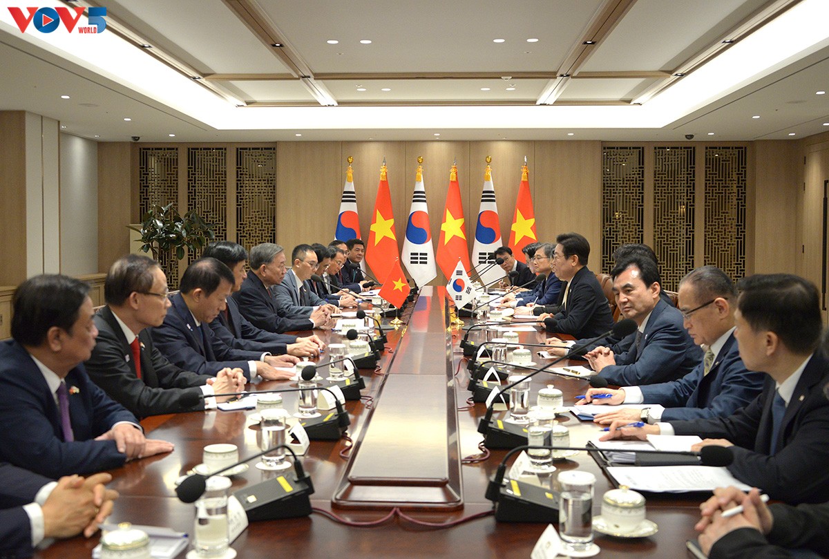 Le Secrétaire général du Parti communiste vietnamien Tô Lâm et le Président sud-coréen Lee Jae-myung. Photo: Văn Hiếu/VOV |
