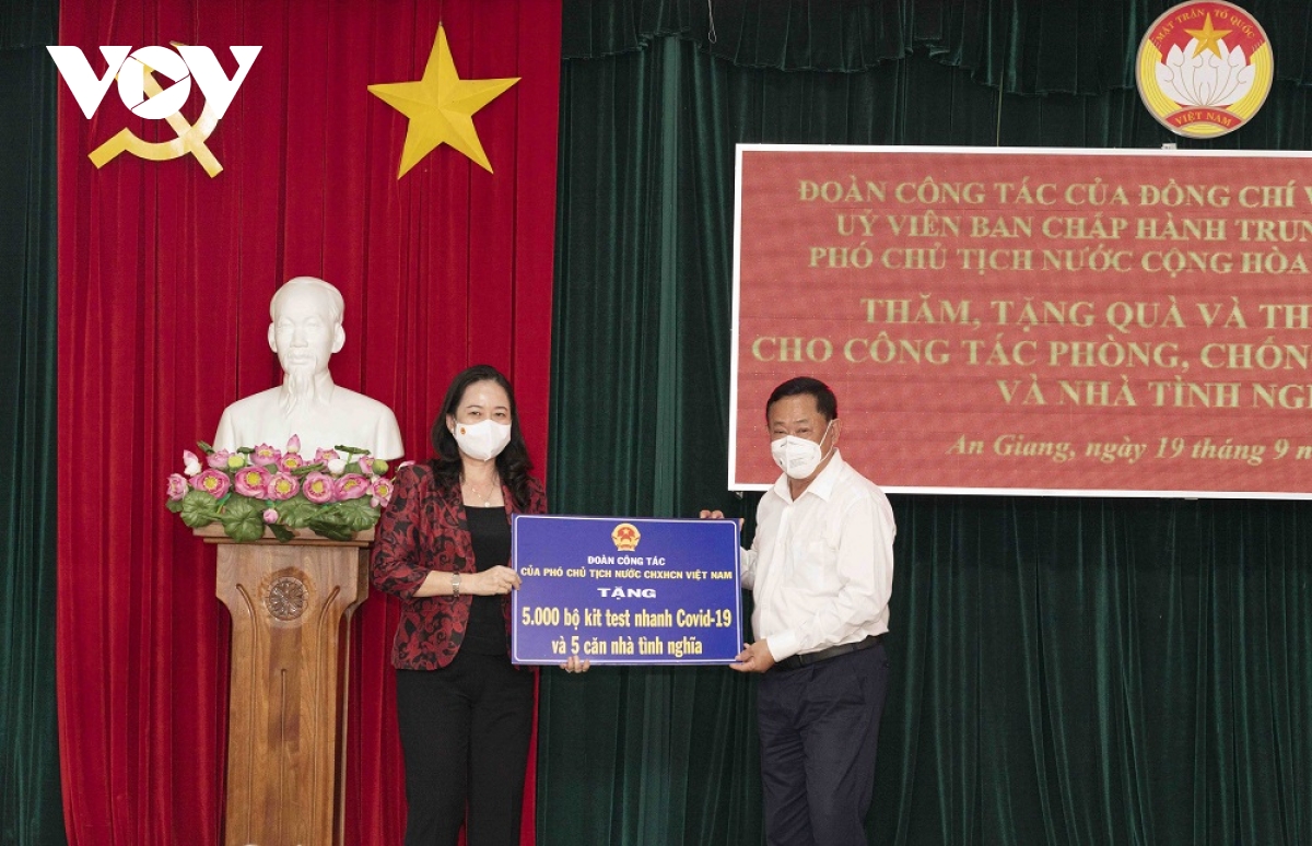 Vo Thi Anh Xuân a également remis aux autorités provinciales 35.000 tests de détection de Covid-19 et des équipements préventifs dont la valeur s'élevait à 612.000 dollars. Elle a aussi remis la clef de cinq maisons de coeur aux familles en difficulté et des "sacs de bien-être" aux ouvriers.