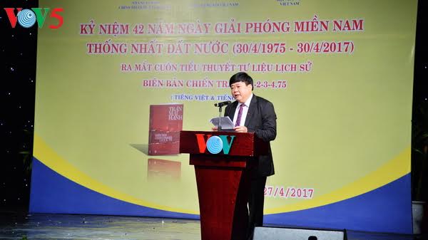 (VOVworld) - A l’occasion du 42ème anniversaire de la libération du Sud, le 30 avril, la Voix du Vietnam en collaboration avec les éditions Politique nationale-Vérité et l’Association des écrivains vietnamiens, a présenté ce jeudi à Hanoi le roman historique “Compte-rendu de guerre 1-2-3-4.75” (versions vietnamienne et anglaise) du journaliste-écrivain Tran Mai Hanh.