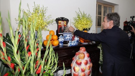 (VOVWORLD) -Samedi soir, 27 juillet, le secrétaire d'État, Antony Blinken, et la délégation américaine envoyée par le président Joe Biden se sont rendus au domicile du secrétaire général Nguyên Phu Trong à Hanoï. Ils ont allumé de l’encens à sa mémoire et présenté leurs condoléances à son épouse, Ngô Thi Mân et à sa famille.