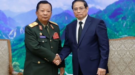 (VOVWORLD) - Ce jeudi à Hanoi, le Premier ministre Pham Minh Chinh a reçu Chansamone Chanyalath, ministre laotien de la Défense.