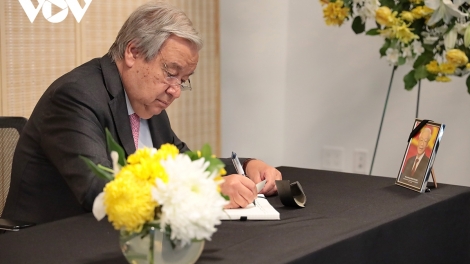 (VOVWORLD) - Mercredi, au siège de la Mission permanente du Vietnam auprès des Nations Unies à New York, une cérémonie a été organisée pour honorer la mémoire du secrétaire général du Parti communiste vietnamien, Nguyên Phu Trong, décédé récemment.