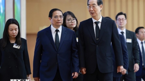 (VOVWORLD) - Ce jeudi après-midi à Hanoï, le Premier ministre Pham Minh Chinh a reçu l'ancien Premier ministre Suga Yoshihide, l'envoyé spécial du Premier ministre du Japon, venu assister aux funérailles du secrétaire général Nguyên Phu Trong.