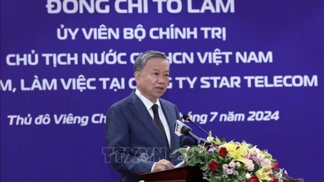 (VOVWORLD) - Dans le cadre de sa visite d’État au Laos, le président vietnamien Tô Lâm s’est rendu ce jeudi au siège de Star Telecom (Unitel), une entreprise du Groupe de l'industrie et des télécommunications de l'Armée (Viettel) du Vietnam.