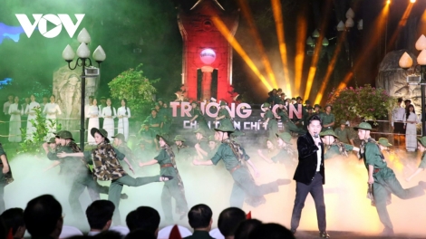 (VOVWORLD) - Dimanche soir, au cimetière des morts pour la Patrie de Truong Son, dans la province de Quang Tri, un programme artistique a été organisé à l’occasion du 65e anniversaire de l’ouverture de la piste Hô Chi Minh et de la journée traditionnelle des soldats de Truong Son.