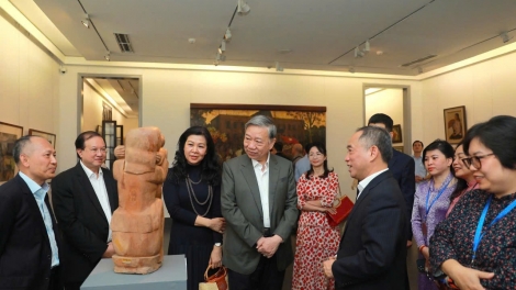 (VOVWORLD) - Le Secrétaire général du Parti communiste vietnamien, Tô Lâm, accompagné de son épouse Ngô Phuong Ly, s’est rendu dimanche au Musée national des beaux-arts du Vietnam pour découvrir une exposition célébrant cent ans de beaux-arts modernes dans le pays.