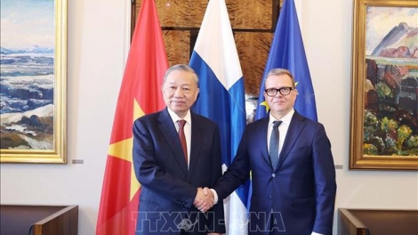 (VOVWORLD) - Dans le cadre de sa visite officielle, le secrétaire général Tô Lâm a présidé, le 21 octobre, une rencontre avec des représentants d’entreprises finlandaises de premier plan.