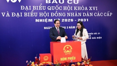 (VOVWORLD) - Ce dimanche matin (15 mars), au bureau de vote n°21 relevant de la circonscription électorale n°7, dans le quartier de Tây Hô à Hanoï, le Premier ministre vietnamien Pham Minh Chinh et son épouse Lê Thi Bich Trân ont accompli leur droit et leur devoir civiques en participant au scrutin pour élire les députés de la XVIe législature de l’Assemblée nationale ainsi que les membres des Conseils populaires à tous les niveaux pour le mandat 2026-2031.