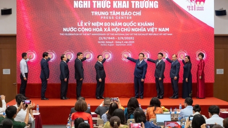 (VOVWORLD) - Ce mardi à Hanoi, la Direction centrale de la célébration des grandes fêtes et grands événements nationaux sur la période 2023-2025 a inauguré le Centre de presse dédié aux commémorations du 80e anniversaire de la Révolution d’Août (19 août 1945 – 19 août 2025) et de la Fête nationale (2 septembre 1945 – 2 septembre 2025).