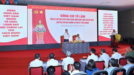 (VOVWORLD) - Le secrétaire général du Parti communiste vietnamien Tô Lâm a appelé, ce jeudi, la province de Tuyên Quang à redéfinir sa position stratégique dans le paysage du développement national, après sa fusion avec la province voisine de Hà Giang.