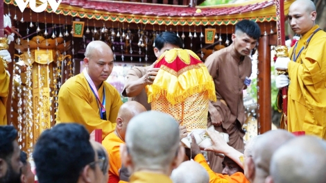 (VOVWORLD) - Dans le cadre des célébrations du Vesak 2025 des Nations Unies, la relique sacrée du Bouddha – classée trésor national par l’Inde – a été solennellement accueillie ce mardi après-midi à la pagode Quan Su, à Hanoï.