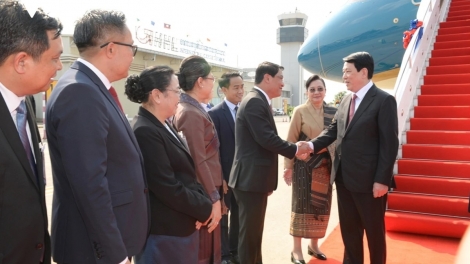 (VOVWORLD) - Le président de la République Luong Cuong est arrivé ce jeudi après-midi à Vientiane pour une visite d’État de deux jours au Laos, répondant à l’invitation de son homologue laotien, Thongloun Sisoulith, également Secrétaire général du Parti populaire révolutionnaire laotien.