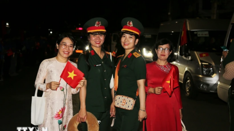 (VOVWORLD) - Ce dimanche matin (20 avril), des centaines d'habitants de Dông Nai étaient présents à la gare de Biên Hoà pour accueillir le train spécial transportant des soldats de la garde d’honneur en provenant du Nord pour participer à la cérémonie du 50e anniversaire de la libération du Sud et de la réunification nationale (30 avril 1975 - 30 avril 2025).