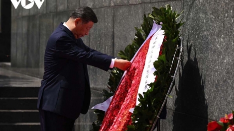 (VOVWORLD) - Dans le cadre de sa visite d’État au Vietnam, le secrétaire général et président chinois Xi Jinping, accompagné du secrétaire général vietnamien Tô Lâm et d’une délégation chinoise, a déposé ce mardi une gerbe au mausolée du Président Hô Chi Minh.