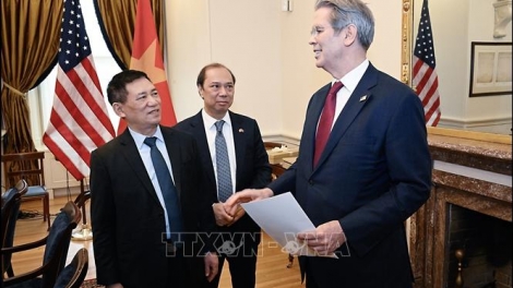 (VOVWORLD) - Poursuivant sa mission aux États-Unis en tant qu’envoyé spécial du secrétaire général du Parti communiste vietnamien, Tô Lâm, le vice-Premier ministre Hô Duc Phoc a rencontré jeudi les secrétaires américains au Trésor, Scott Bessent et au Commerce, Howard Lutnick.