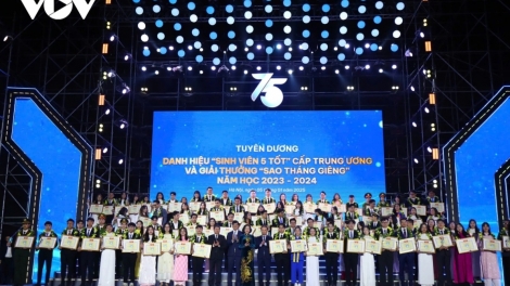 (VOVWORLD) - Dimanche soir, à Hanoï, l'Union de la jeunesse communiste Hô Chi Minh et l'Association des étudiants du Vietnam ont organisé un programme pour célébrer le 75e anniversaire de la Journée traditionnelle des étudiants et de l’Association des étudiants du Vietnam (9 janvier 1950 - 9 janvier 2025).