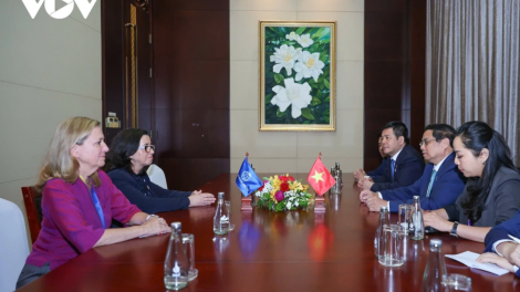 (VOVWORLD) - Le Premier ministre Pham Minh Chinh a rencontré ce jeudi à Vientiane Manuela Ferro, vice-présidente de la Banque mondiale pour l’Asie de l'Est et le Pacifique.