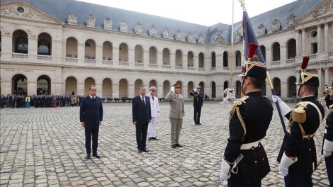 (VOVWORLD) - Ce lundi matin, le Secrétaire général du Parti communiste et Président vietnamien, Tô Lâm, a été accueilli lors d’une cérémonie officielle à l’Hôtel des Invalides à Paris, sous la présidence du ministre des Armées, Sébastien Lecornu.