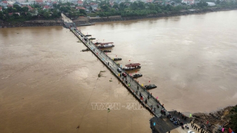(VOVWORLD) - Le pont flottant Phong Châu a été inauguré ce lundi dans la province de Phu Tho, 20 jours après l'effondrement du pont du même nom, survenu en raison des intempéries liées au typhon Yagi.