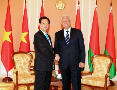 ![]() Le Premier Ministre Nguyen Tan Dung (gauche) et son homologue biélorusse Mikhaïl Miasnikovitch (droite)