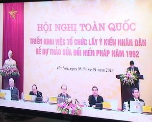 (VOVworld) - Les Vietnamiens sont actuellement invités à se prononcer sur le projet d’amendement de la Constitution de 1992, qui concerne des sujets aussi importants que le régime politique, les droits de l’homme, la défense de la Patrie, ou encore l’appareil étatique. Pendant trois mois, leurs avis sont recueillis sous différentes formes, en vue du peaufinement de la loi fondamentale qui est censée traduire la volonté et l’aspiration du peuple.