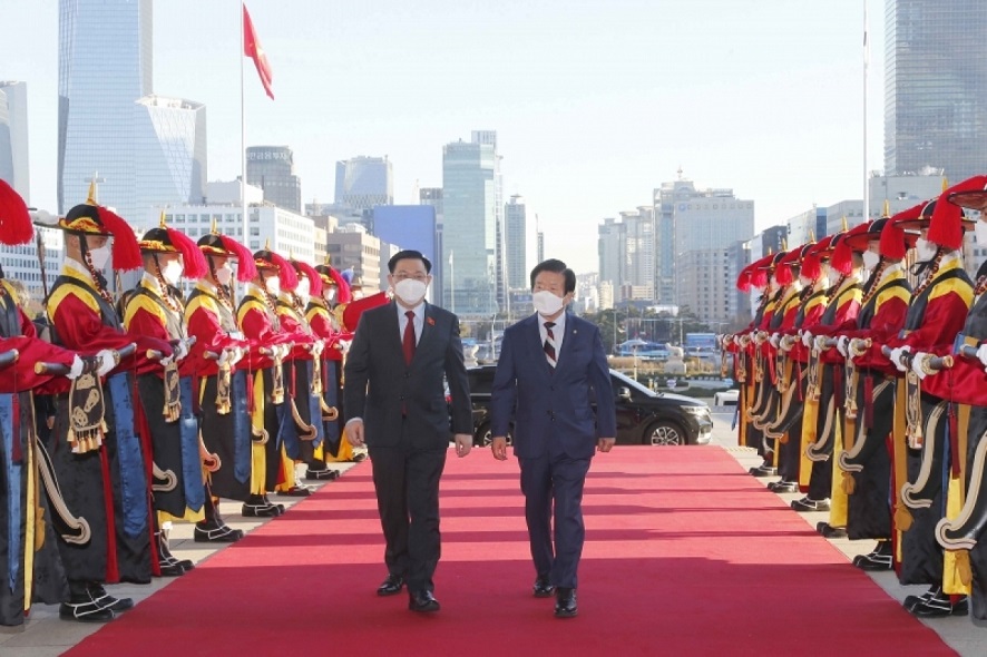 Le président de l’Assemblée nationale Vuong Dinh Huê (gauche) et son homologue sud-coréen Park Byeong-seug (photo: VOV) |