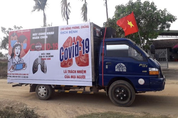 Un camion de propagande anti-Covid-19 à Vu Bôn. Photo : mic.gov.vn |