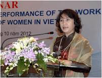 « En ce qui concerne l’égalité des sexes, le Vietnam est mieux classé que d’autres pays ayant le même niveau de développement et de revenu. Il est également reconnu comme étant le pays qui a éliminé le plus vite l’écart entre les sexes au cours des 20 dernières années en Asie du Sud-Est. Grâce au concours du Parti, de l’Etat et à leurs propres efforts, les femmes vietnamiennes ont eu des contributions importantes dans tous les domaines, que ce soit dans la gestion étatique, la production, le commerce, la diplomatie, les sciences, les technologies, et bien évidemment, dans le domaine familial. »
