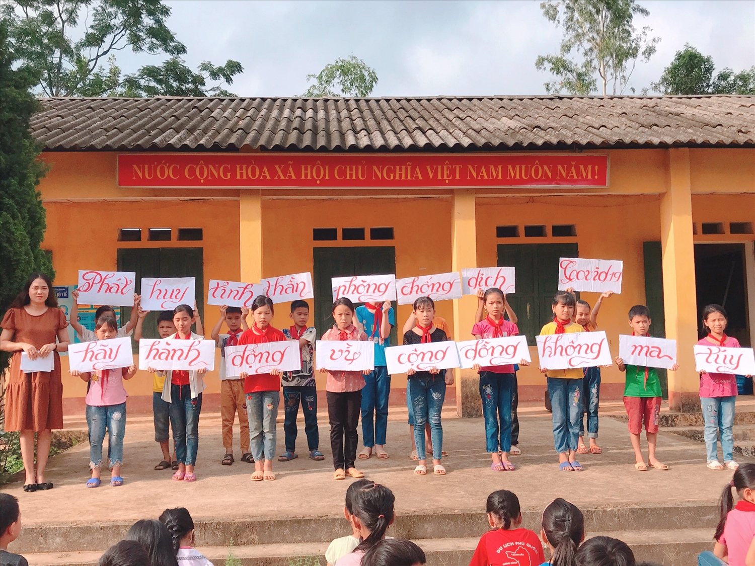 Luttons contre les stupéfiants comme s’il s’agissait de l’épidémie de Covid-19, affichent les élèves d’une école primaire dans la province de Thai Nguyên. |