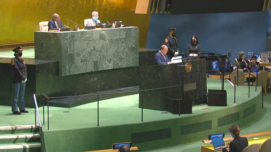 Le président Nguyên Xuân Phuc prend la parole à la 76e Assemblée générale de l’ONU à New York. Photo: VOV |