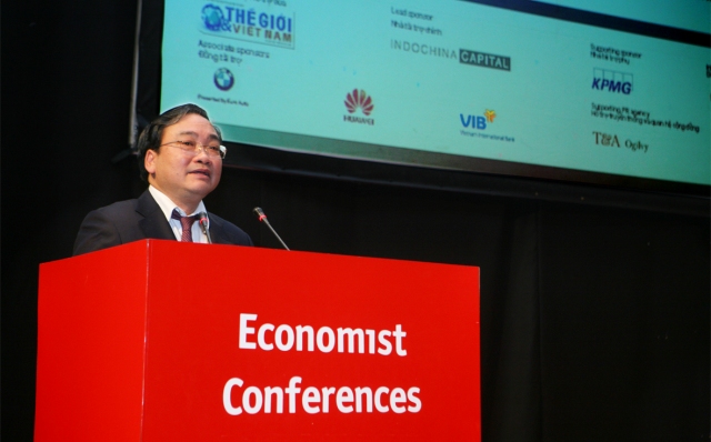 | Le vice-Premier Ministre Hoang Trung Hai prenant la parole à la conférence |