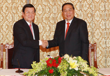 | Le président vietnamien Truong Tan Sang et le secrétaire général et président du Laos, Chummaly Sayasone ont choisi 2012 comme étant “l’année de la solidarité et de l’amitié Vietnam-Laos” afin de célébrer les 50 ans des relations diplomatiques et les 35 ans du traité d’amitié et de coopération bilatérales |