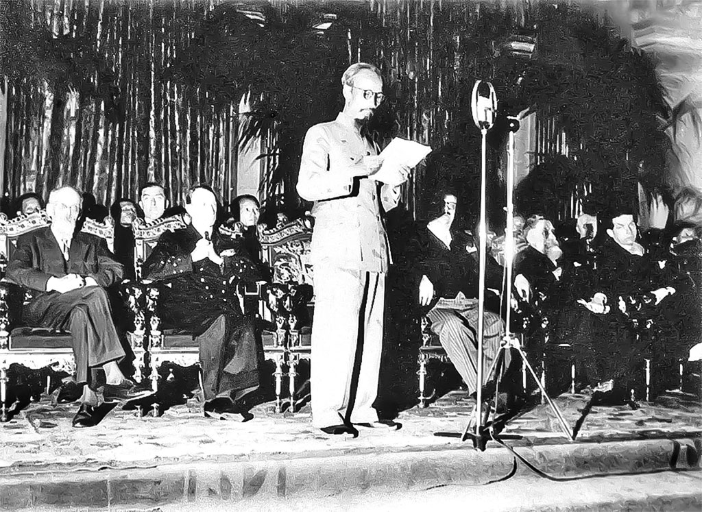 Le Président Hô Chi Minh présente la Déclaration d’indépendance de la République démocratique du Vietnam, l’actuelle République socialiste du Vietnam. Photo d'archives |
