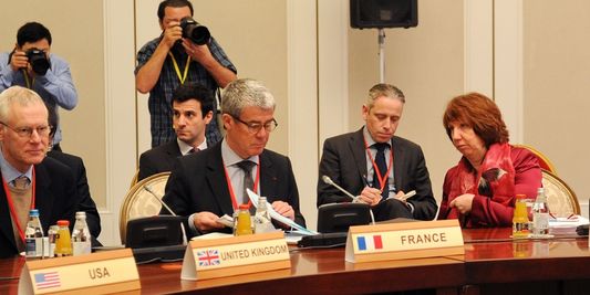 ![]() Les représentants du groupe des "5+1" (Etats-Unis, France, Russie, Grande-Bretagne, Chine et Allemagne), lors de la réunion d'Almaty, au Kazakhstan, sur le nucléaire iranien. | AFP/ILYAS OMAROV