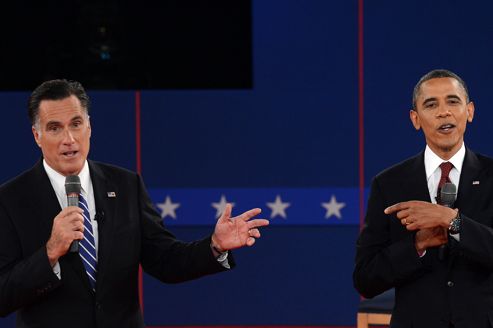 ![]() Mitt Romney et Barack Obama lors du deuxième débat télévisé, à Hempstead, dans l'État de New York. (Photo : STAN HONDA/AFP)