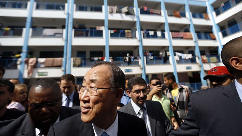 ![]() Ban Ki-Moon s'est dit porteur d'«un message d'espoir» alors qu'il visitait le quartier dévasté de Chajaya, à Gaza. |