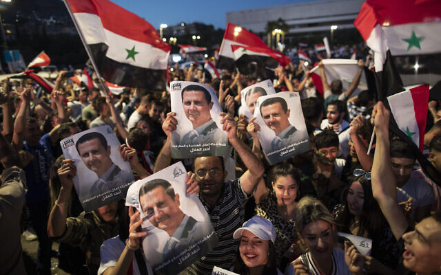 De nombreux Syriens descendent dans la rue pour célébrer la réélection du président Bashar al-Assad, le 27 mai 2021. Photo: AP/Hassan Ammar |