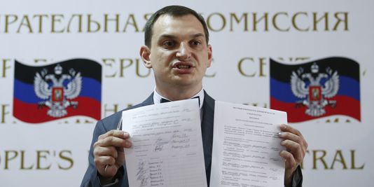 ![]() Le chef de la commission électorale pour le référendum sur l'autonomie à Donetsk, Roman Lyagin, présente les résultats du scrutin. Photo : Reuters