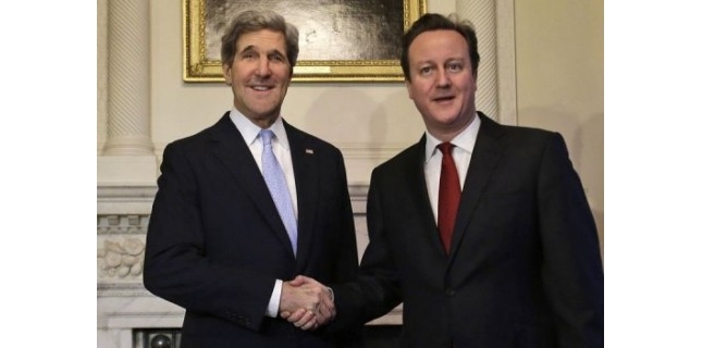 ![]() Le secrétaire d'Etat américain John Kerry s'entretenait lundi avec le Premier ministre britannique David Cameron et son homologue William Hague (photo : Afp)
