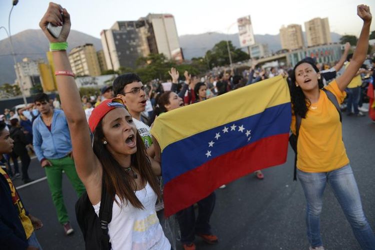 ![]() Des étudiants manifestent contre le gouvernement de Nicolas Maduro à Caracas le 13 février 2014 (Photo Leo Ramirez. AFP)