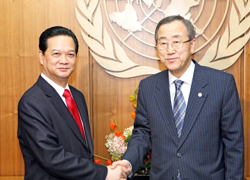 Le secrétaire général actuel de l’ONU, Ban Ki-moon, y a joué un rôle prépondérant, tant en matière de maintien de la paix et de la sécurité, que de promotion et de garantie des droits de l’homme. Il a pris plusieurs initiatives permettant de régler des conflits régionaux, de réformer les activités de maintien de la paix, d’accélérer le désarmement, de mobiliser les efforts internationaux dans la lutte contre le terrorisme, dans l’adaptation au changement climatique, dans la réduction de la pauvreté ou encore dans la lutte contre les épidémies et les catastrophes naturelles. Mais Ban Ki-moon est surtout un grand vietnamophile qui effectue cette fois-ci sa deuxième visite au pays, au moment où les deux parties préparent la célébration du 70ème anniversaire de l’ONU.
