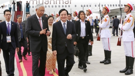 (VOVworld) - Le président birman, Htin Kyaw et son épouse sont en visite au Vietnam de mercredi à vendredi, à l’invitation de son homologue vietnamien. Il s’agit de sa première visite au Vietnam depuis son investiture en mars dernier. Par cette visite, Vietnamiens et Birmans affirment leur volonté de promouvoir l’amitié et la coopération bilatérale.